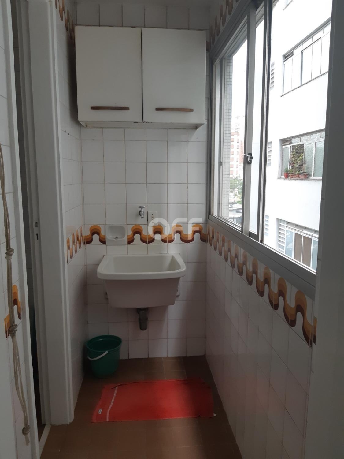 Apartamento amplo de 1 quarto com armário embutido, sala 2 ambientes, cozinha, 1 banheiro social, área de serviço com banheiro de apoio.
