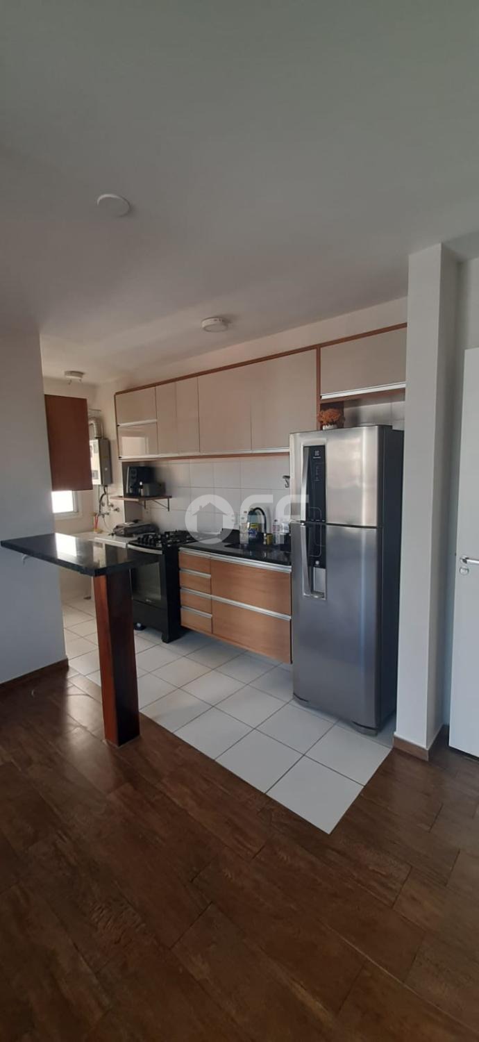 2 quartos, sendo 1 suíte; 1 banheiro social; Cozinha estilo americana com armários planejados; Sala ampla 2 ambientes; Área de serviço.