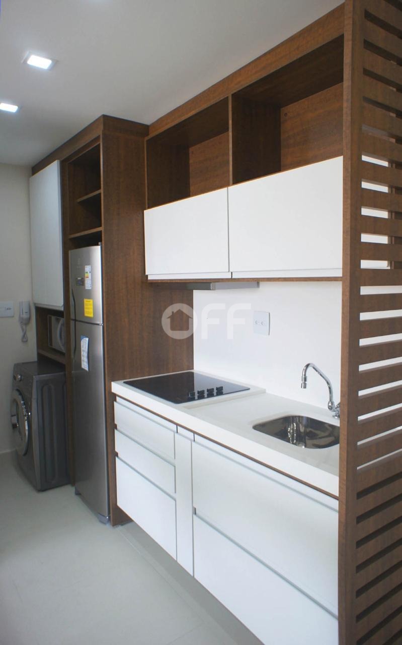 - Imóvel: com ambientes integrados, cozinha com armários planejados, armário no quarto, banheiro com Blindex e uma vaga de garagem coberta no subsolo livre.