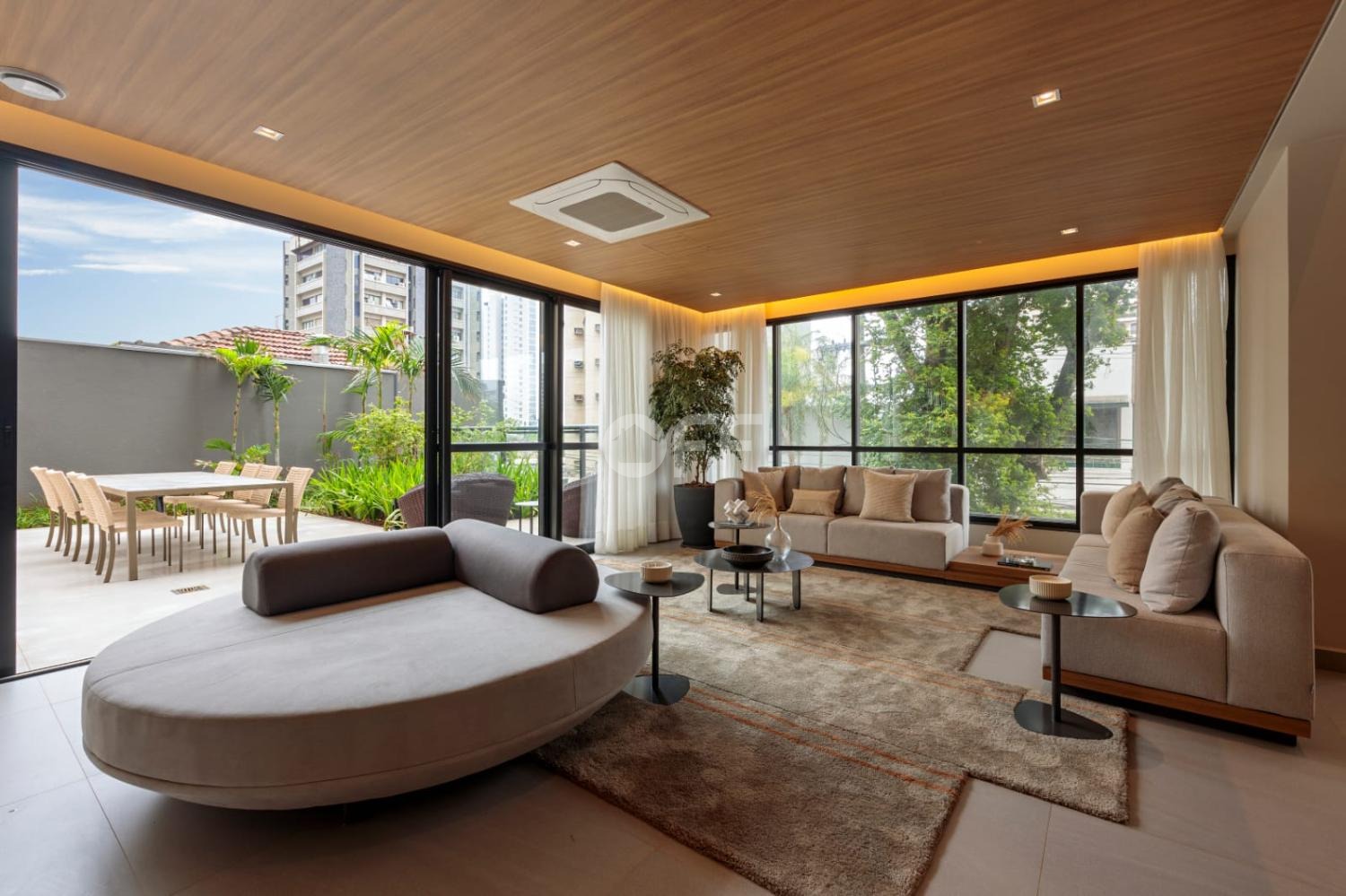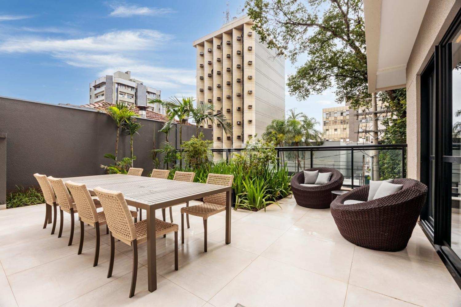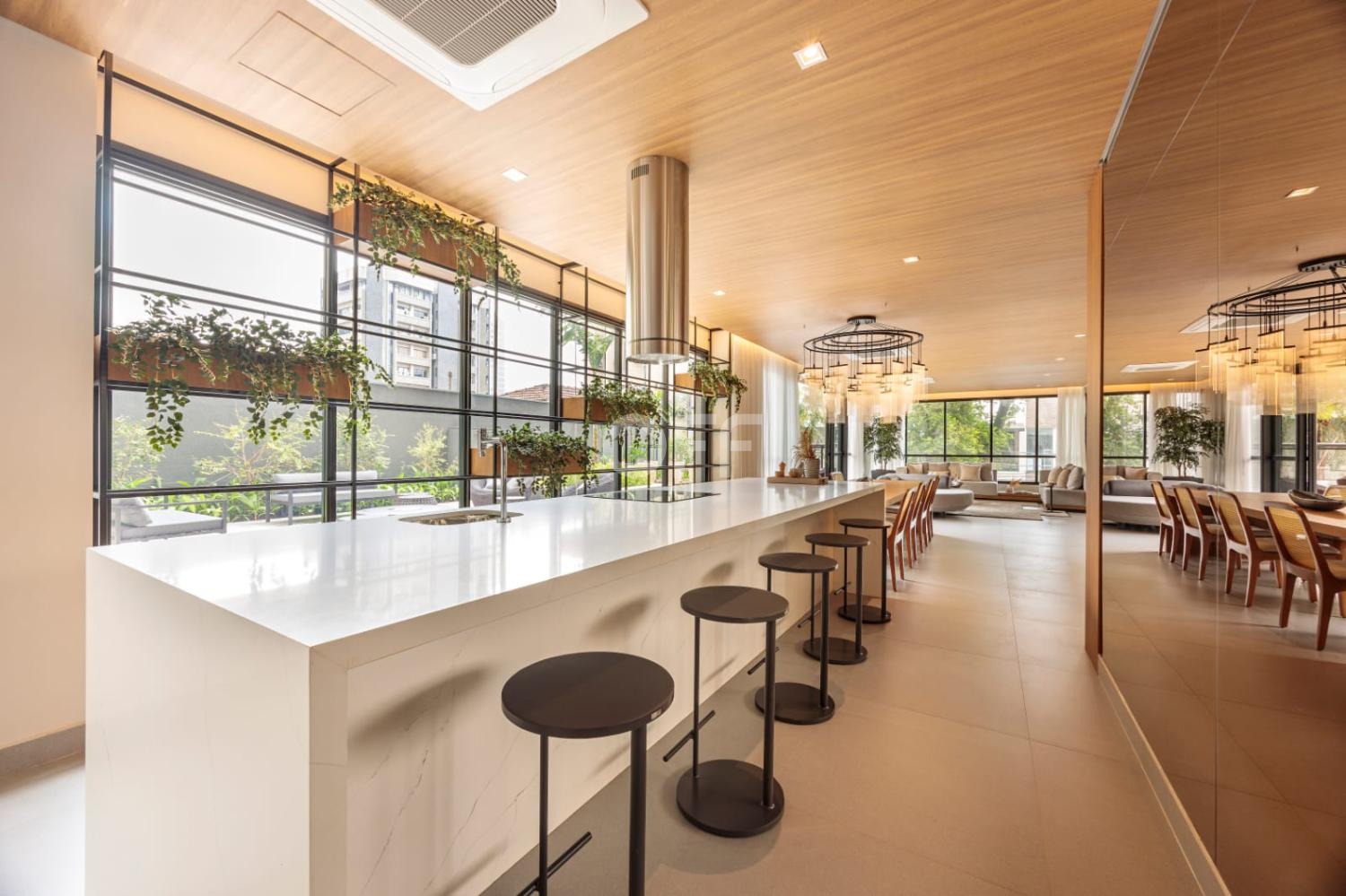 Pé-direito duplo de 5,50 metros no living e terraço