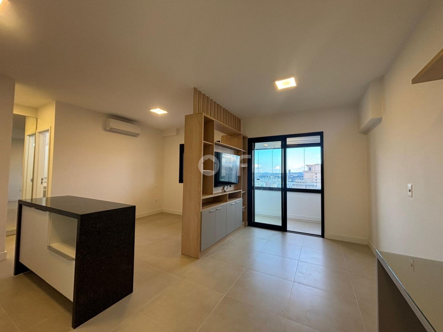 - Living integrado: cozinha, sala de estar e varanda