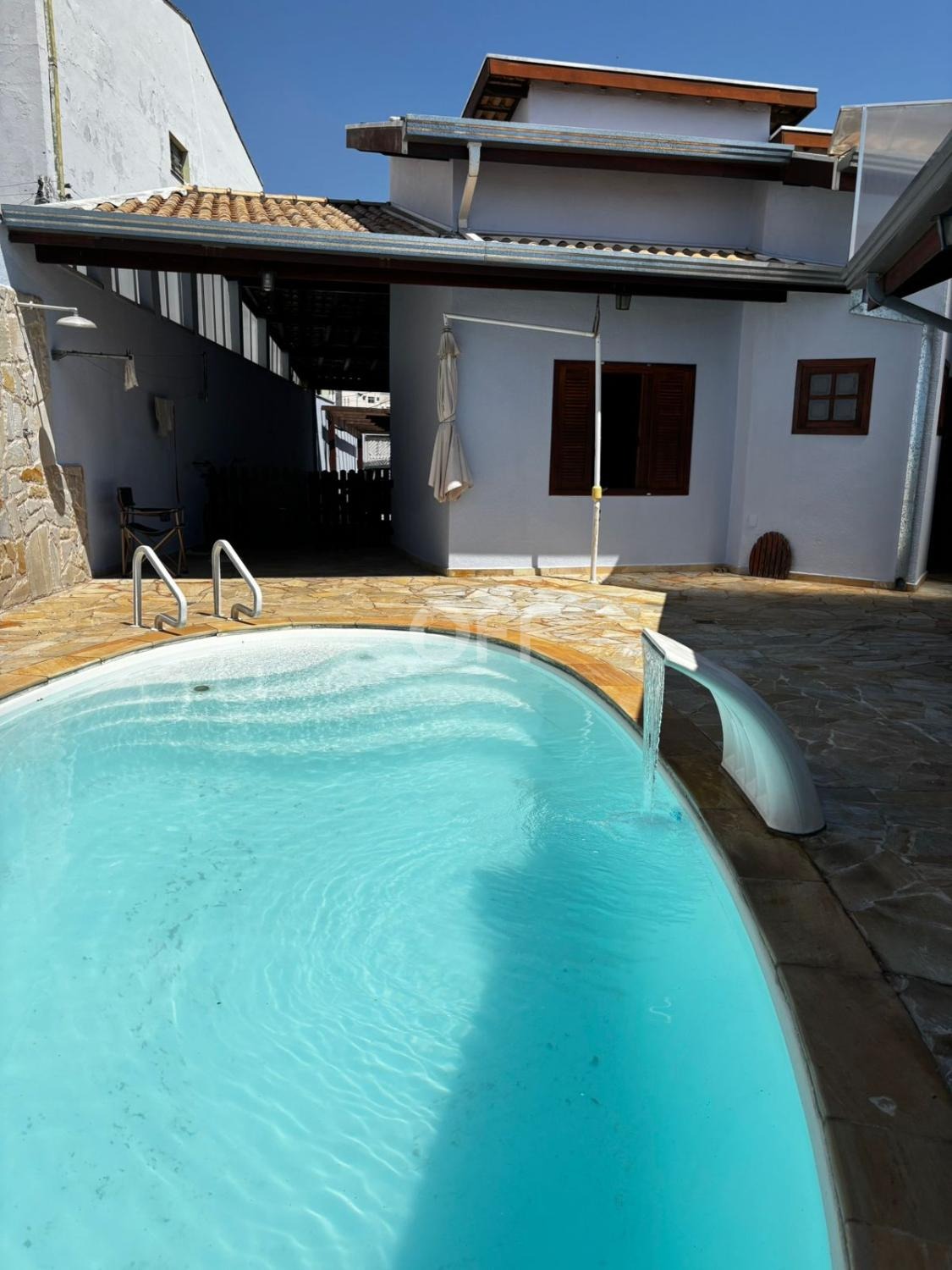 Área de lazer espaçosa com piscina aquecida