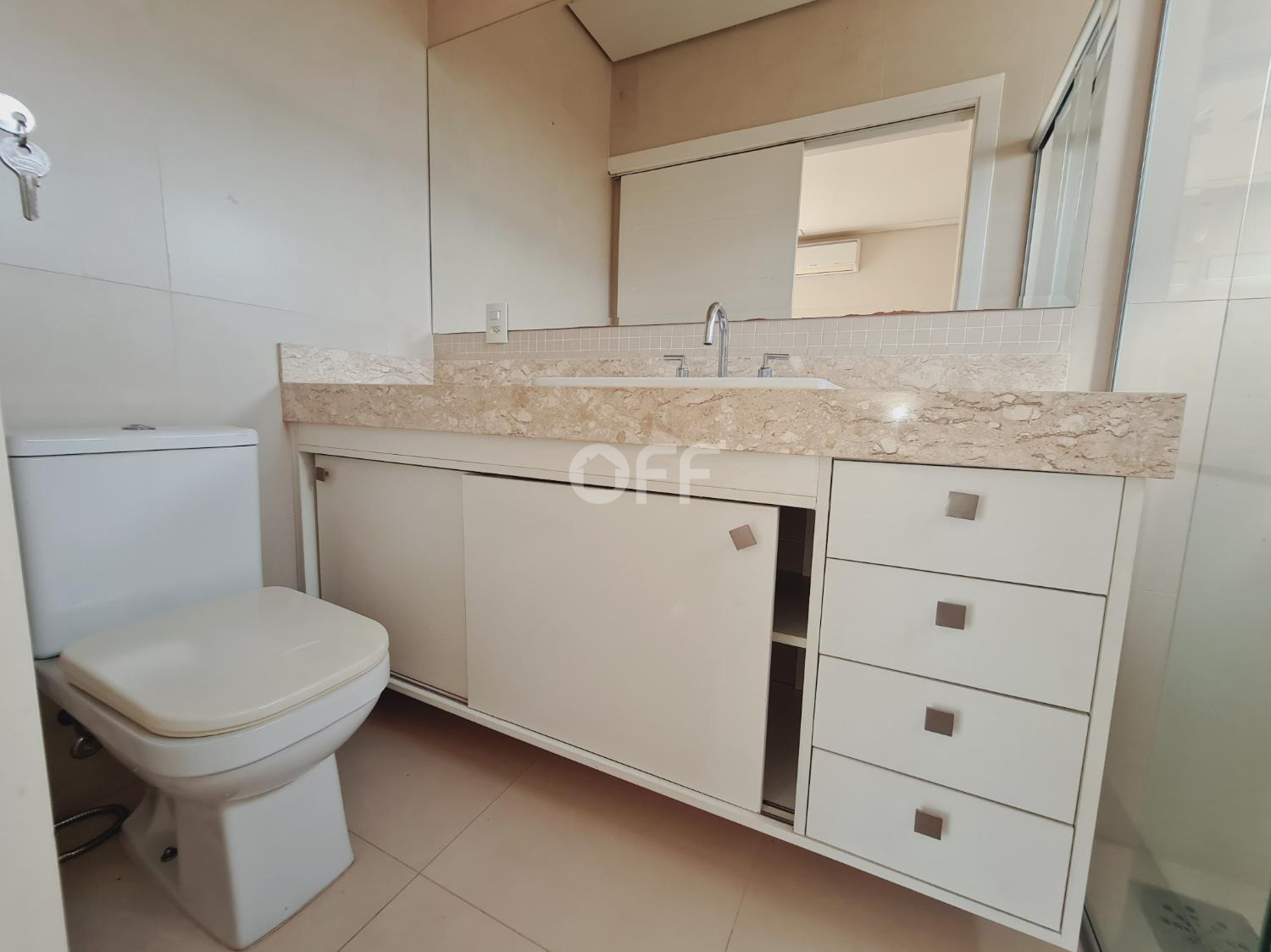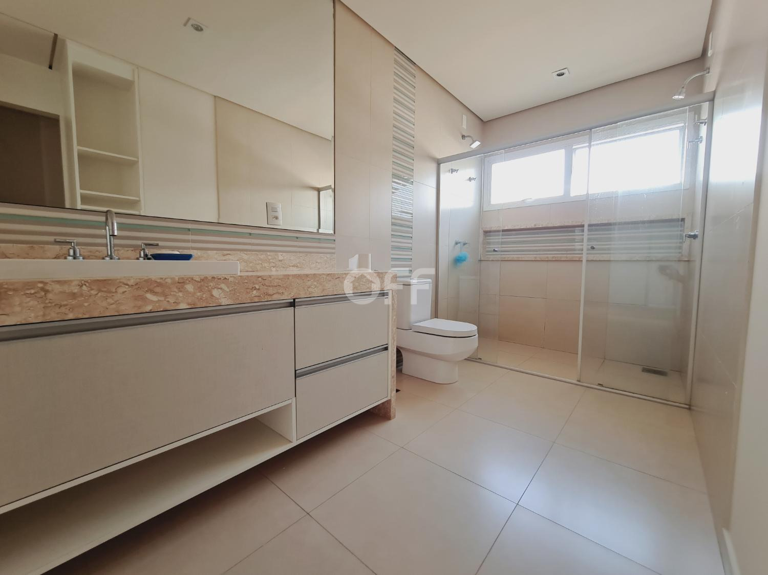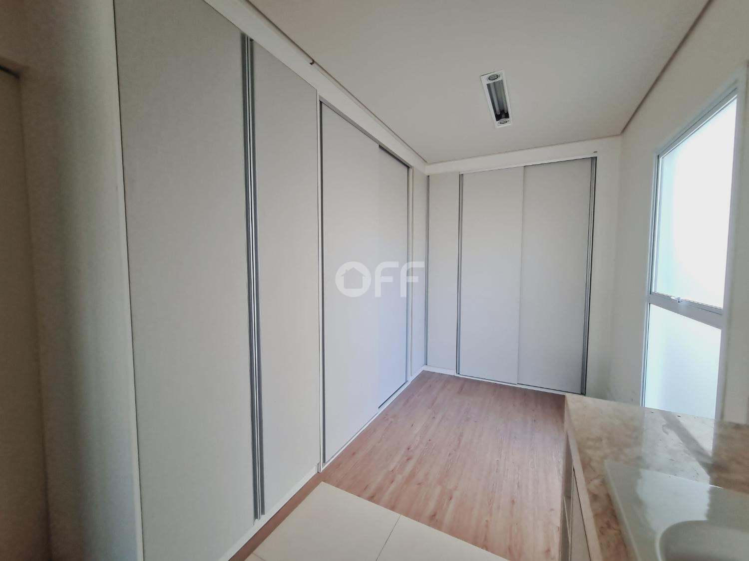 Pavimento superior São 3 suítes com closet, incluindo a suíte máster com dois closets espaçosos, e no pavimento térreo, ideal para quem busca acessibilidade e privacidade para hóspedes.