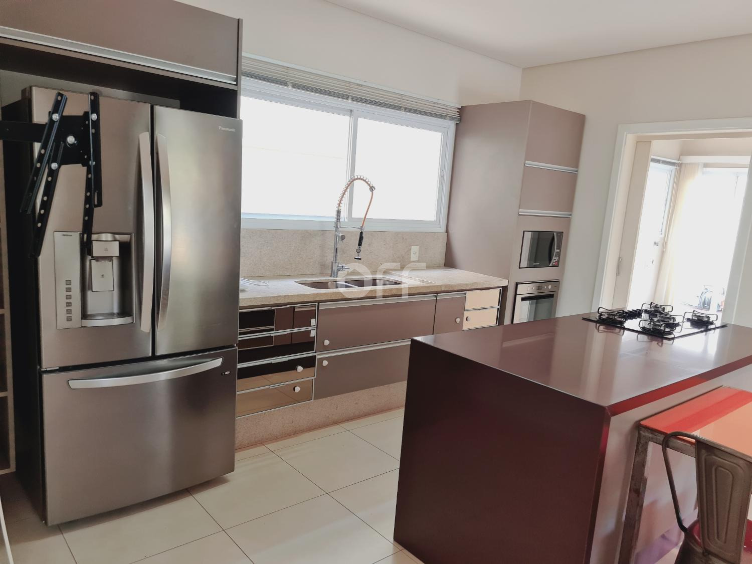geladeira triplex e com despensa, área de serviço e banheiro de apoio. O piso em porcelanato garante sofisticação e praticidade, e o imóvel aceita pets.