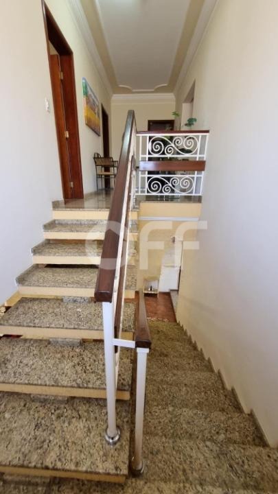 Piso superior: 3 dormitórios avarandados, sendo 2 suítes, além de um escritório;