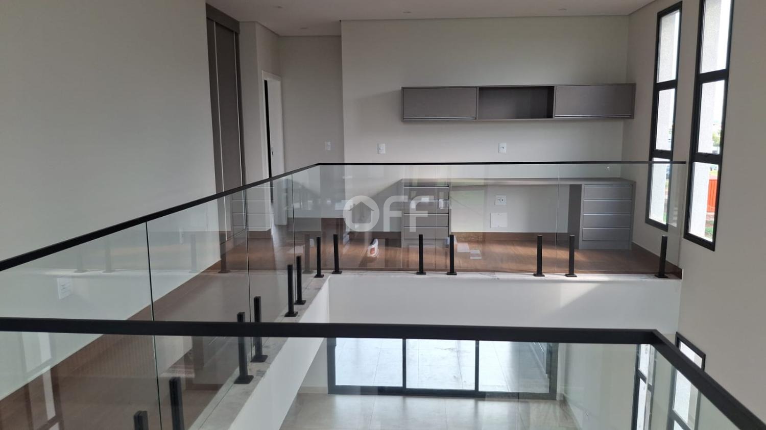 Sala ampla para 2 ambientes com pé-direito duplo, proporcionando sofisticação e iluminação natural