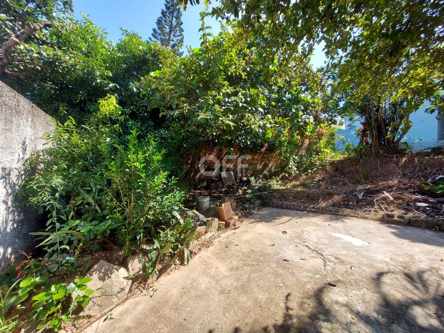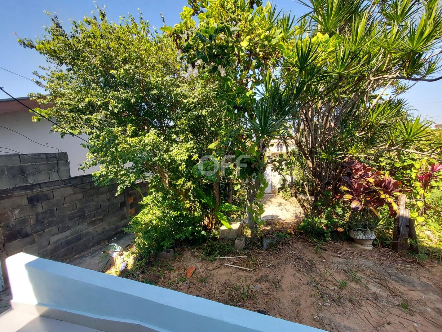 Na frente há uma grande área com diversos pés de árvores frutíferas.