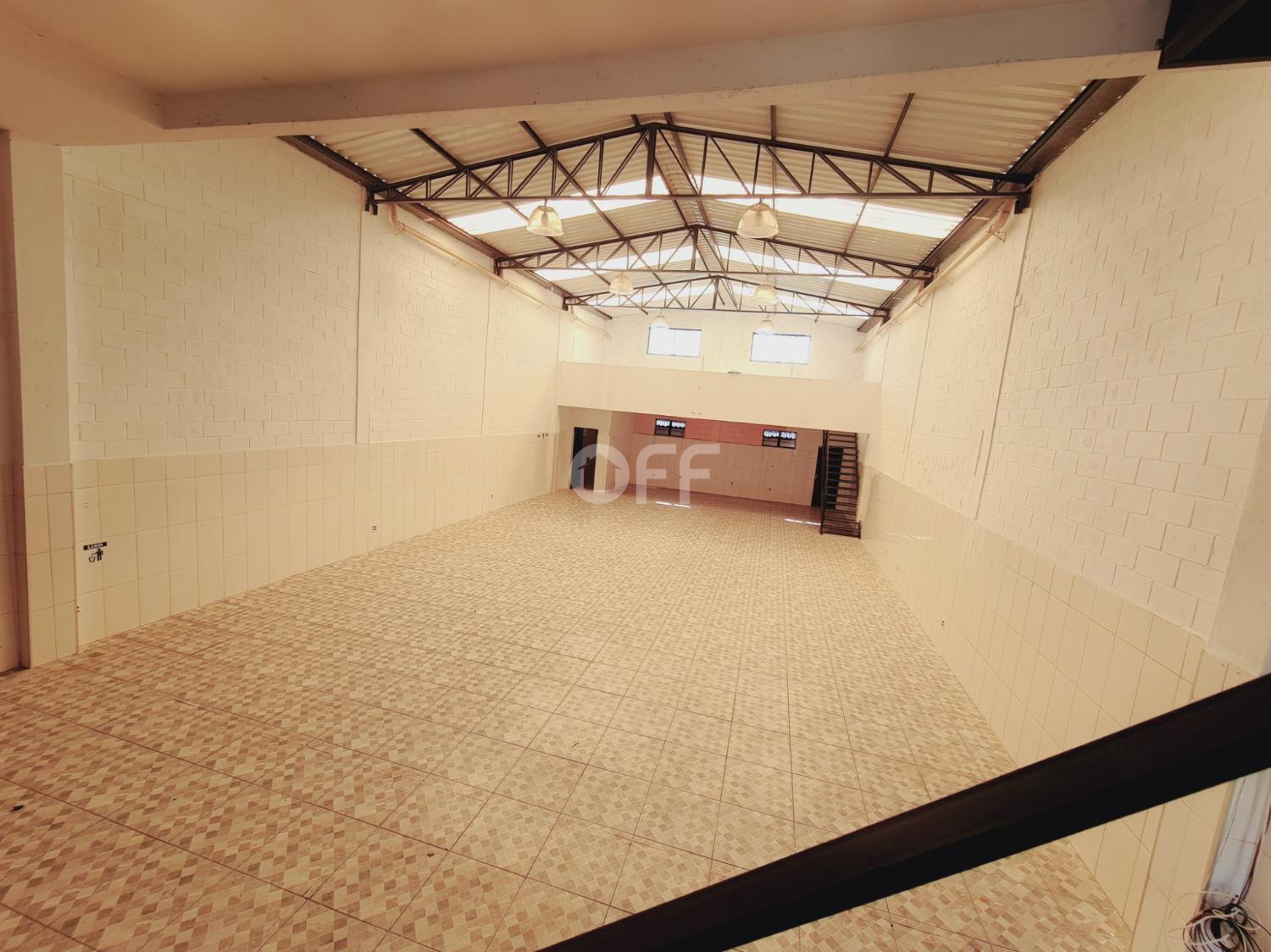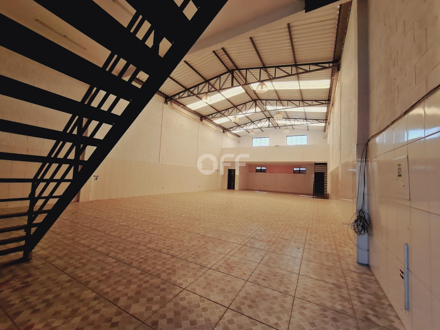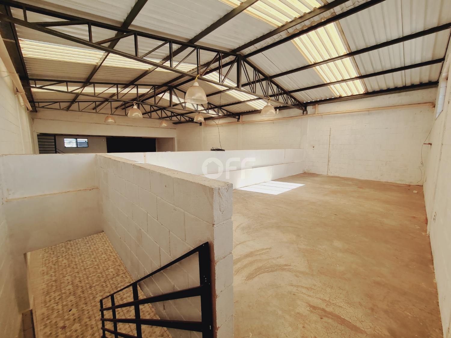 Estacionamento frente para 5 carros, ampla área livre com pé direito de 4,50 metros, frente com grandes e portão.