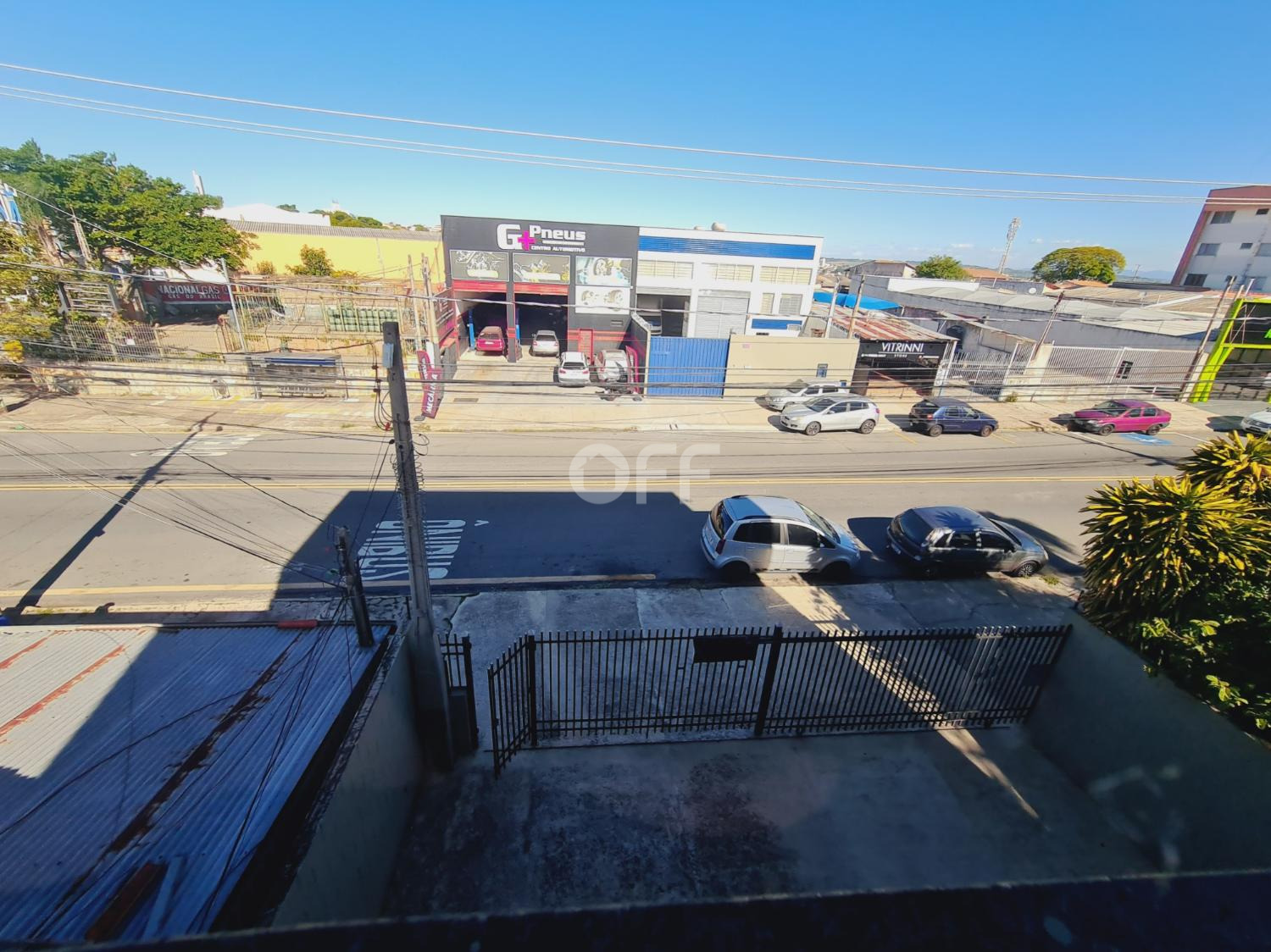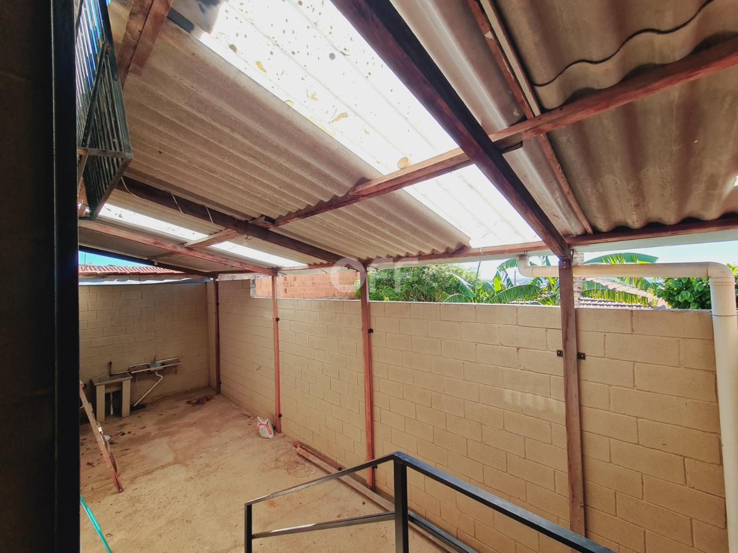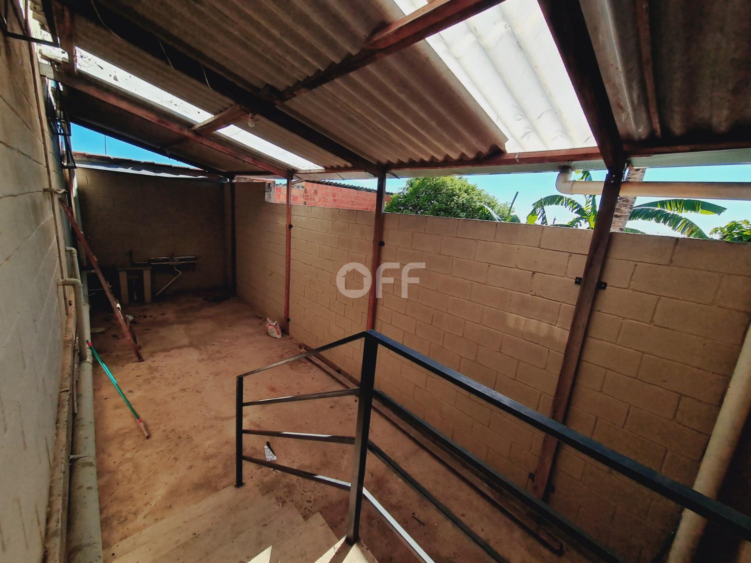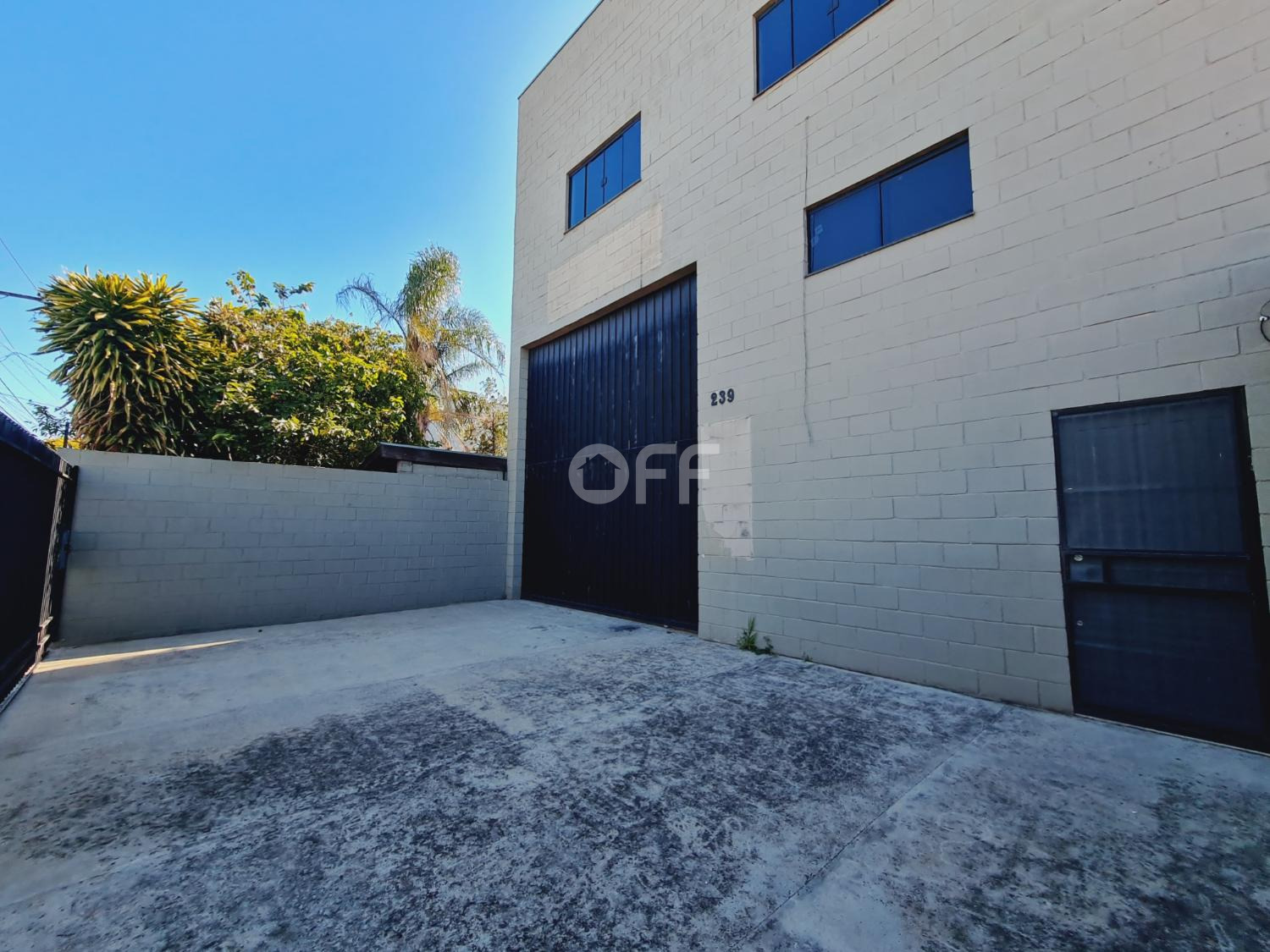 Estacionamento frente para 5 carros, ampla área livre com pé direito de 4,50 metros, frente com grandes e portão.